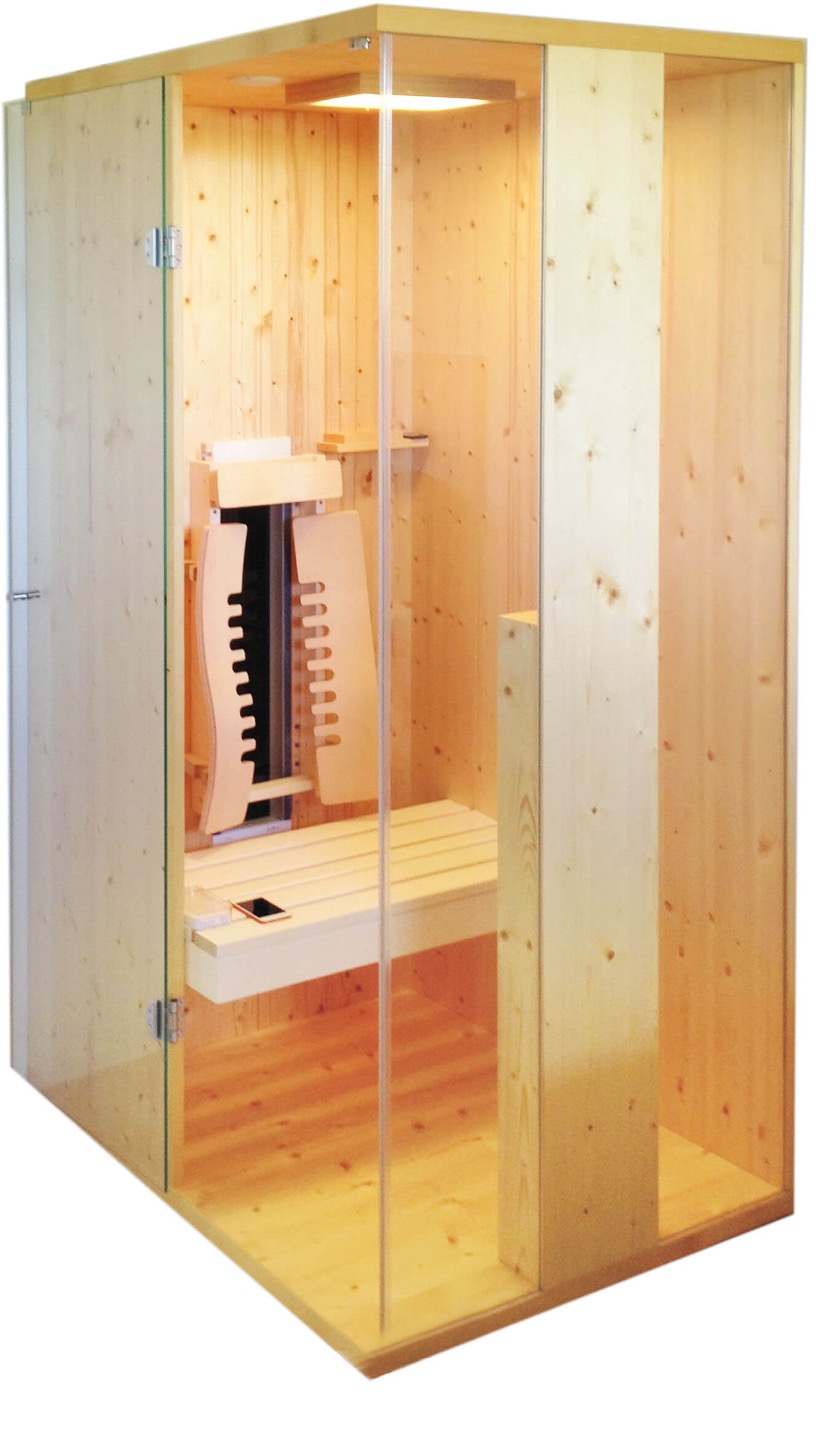 Die Infrarotkabine „Natur 2G“ hat durch ihre Glaselemente ein offenes und brillantes Design. So ist…