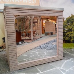 Erleben Sie höchsten Sauna-Genuss im Garten mit dem Saunahaus mit Panoramaglas, einer Aussensauna,…